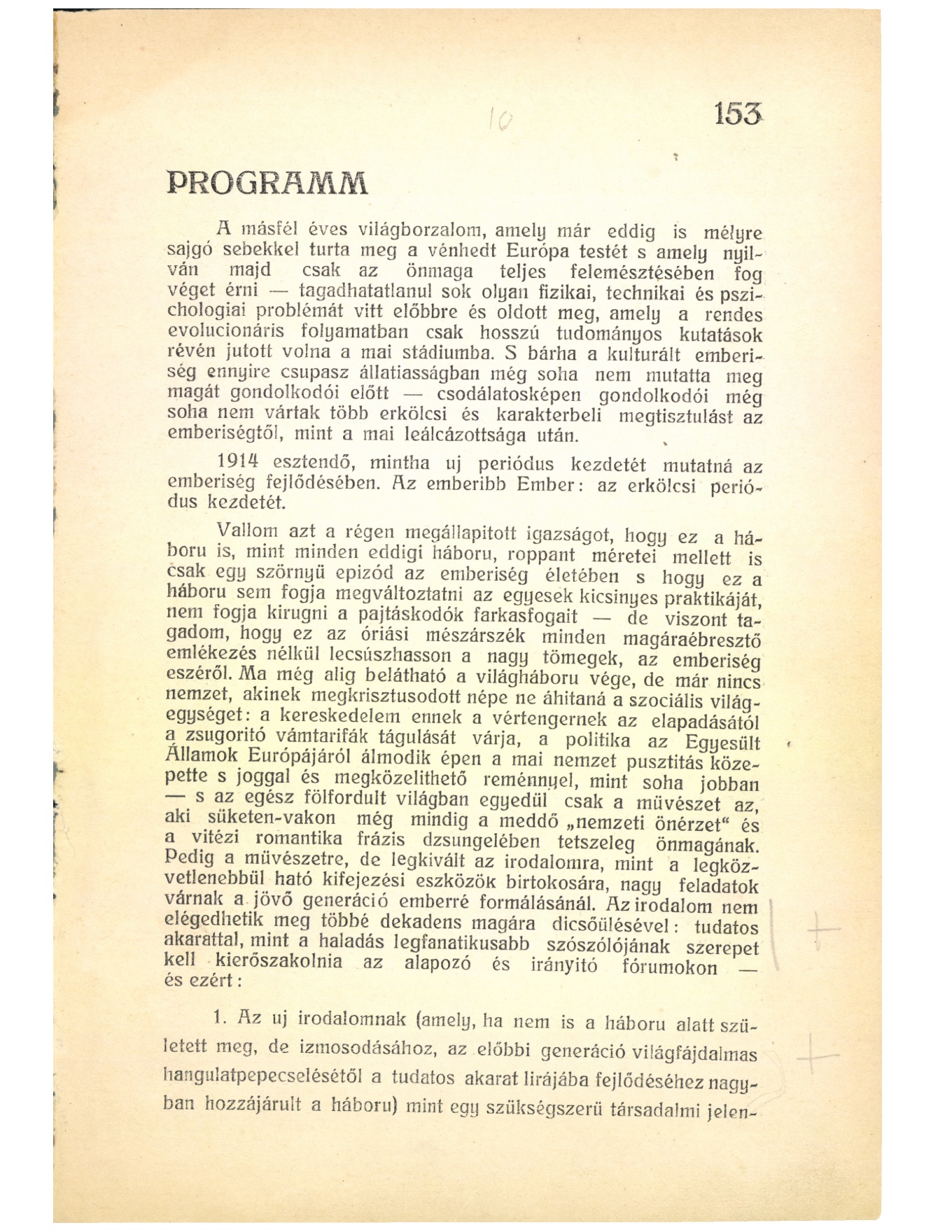 Lajos Kassák, "Program" (1916) [Original Hungarian text in A Tett.]