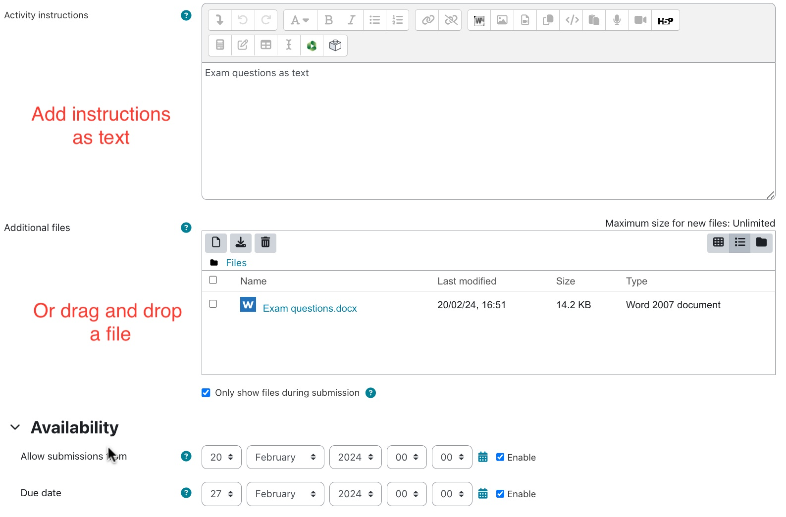 - Create an exam with quiz (with multiple choice questions - Moodle.org guide)